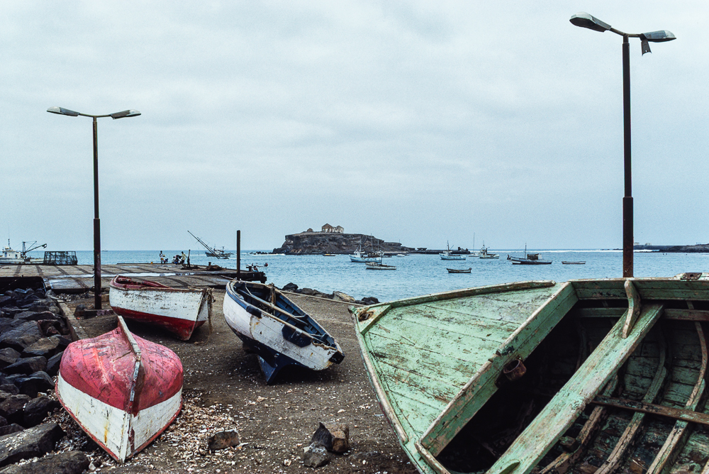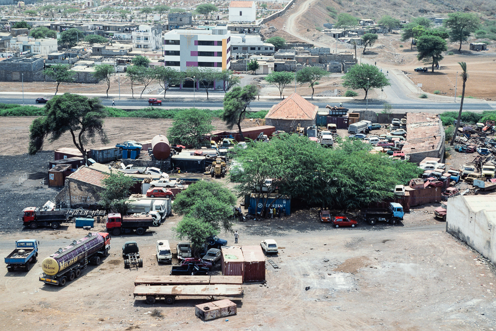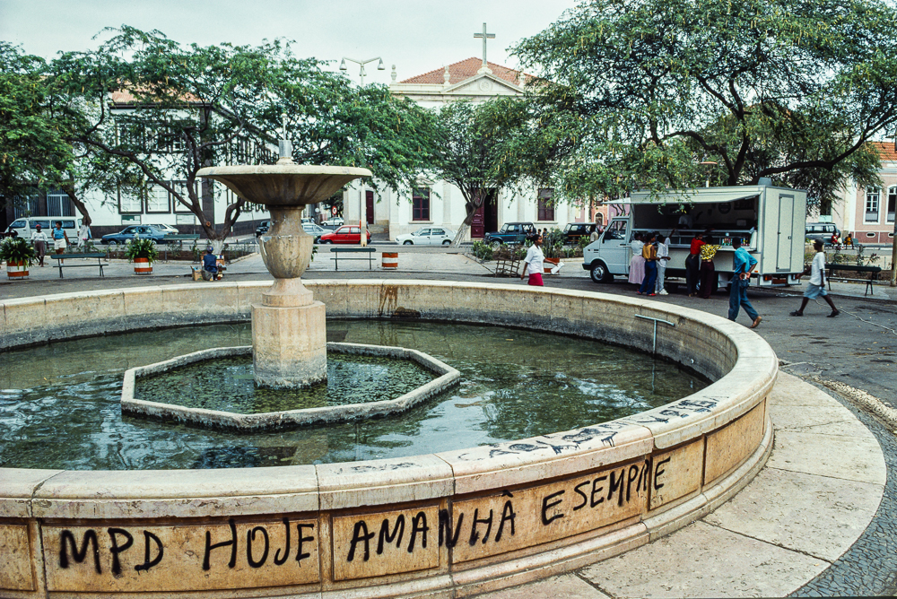 Wir beziehen ein Quartier auf dem Tafelberg direkt am grossen „Platz des 12. September“. Um uns herum gruppieren sich Nationalbank, Rathaus, der Hauptsitz der Nationalen Fluglinie und weitere wichtige Institutionen. Die umliegenden Gassen sind gespickt mit Firmensitzen, Ländervertretungen, internationalen Verbänden politischer und wirtschaftlicher Art. Uns fallen die vielen Menschen in dunklen Anzügen und noch dunklerer Sonnenbrille auf, die sich die Klinken von grossen Taxis in die Hand geben. Für kapverdische Verhältnisse herrscht Grossstadtverkehr. Hinter der Nationalbank liegt der Präsidentenpalast, von dessen Mauern der Blick über die neuen und alten Hafenanlagen hinunter zum Nobelviertel Prainja schweift. Dazwischen hämmern Tag und Nacht die Dieselturbinen der Stromversorgungsgesellschaft. In der Bucht liegt eine kleine Insel mit den Ruinen der Quarantänestation; ein Relikt aus jenen Tagen, als viele Krankheiten und Seuchen um die Welt transportiert wurden.