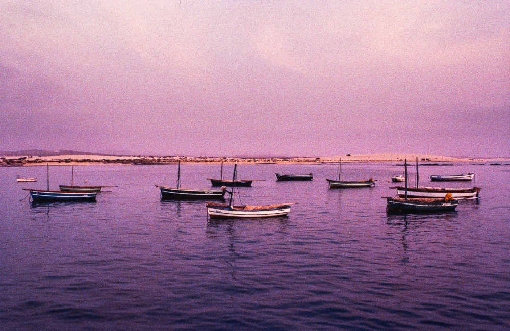 Unsere eigenen Fussspuren sind die einzige Hinterlassenschaft am Strand, bis auch sie von der Flut fortgespült werden. Doch als wir uns wieder dem Ort nähern ändert sich das Bild: überall verunstalt der achtlos weggeworfene Müll die Umgebung. Neben dem Landungssteg liegen die farbenfrohen Boote, die nur auf Boa Vista mit einem lateinischen Dreiecksegel ausgestattet sind, das jedoch zugunsten des Aussenbordmotors nach und nach aufgegeben wird. Auf einer Bank am überdimensionierten zentralen Platz, um den sich ehemalige Kolonialgebäude mit Läden, die wehrhaft anmutende Kirche und grell bunte Wohnhäuser gruppieren, beobachten wir die vielen Familien beim Abendspaziergang.