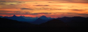Sonnenaufgang auf der Diavolezza-Hütte, Berninan-Massiv, Engadin, Graubünden, Schweiz