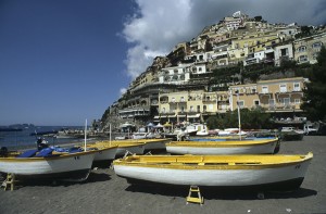 Fischerboote am Strand von Positano, Amalfiküste, Kampanien, Italien