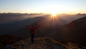 Sonnenuntergang auf dem Roßstein, Bayern, Deutschland