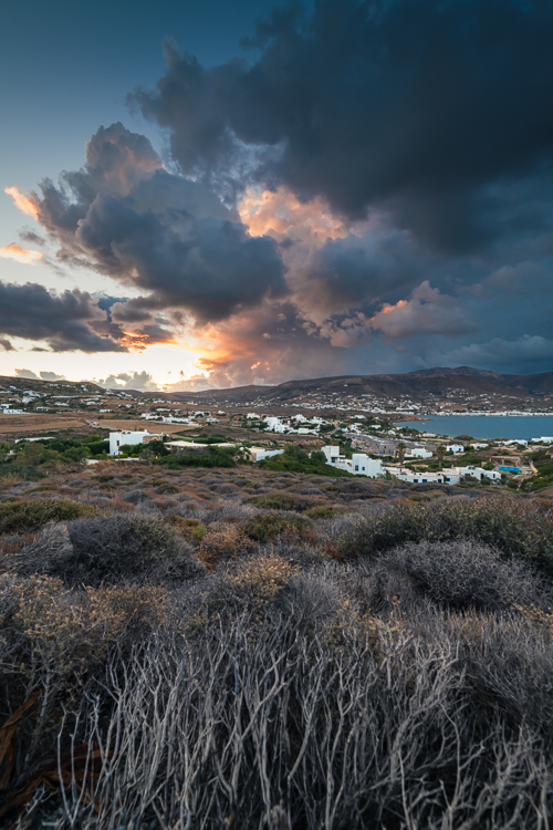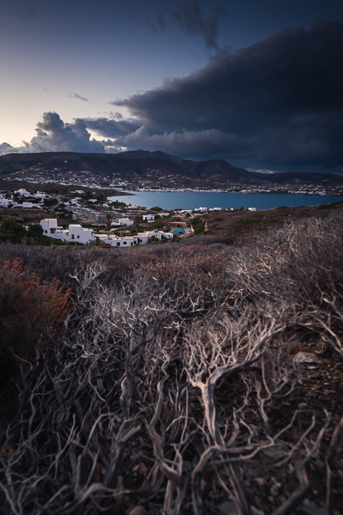Ich hatte insgesamt Glück, dass ich in der Woche auf Paros ein abwechslungsreiches Wetter erleben durfte – von Regen und Wind bis zu herbstlicher Wärme bei wolkenlosem Blau war alles dabei. Diese Vielfalt ermöglichte unerwartete wie auch ungewöhnliche Motive und Stimmungen. Das kann den Reiz der Reise- und Landschaftsfotografie ausmachen, wenn man nicht unbedingt zu den Bilderplanern („Picturemaker“) gehört, die vorab z.B. per App Ort und Zeitpunkt, Wetter und Sichtbarkeit, Motiv und Perspektive akribisch planen. Könnte ich auch, ist aber eher nicht mein Stil.