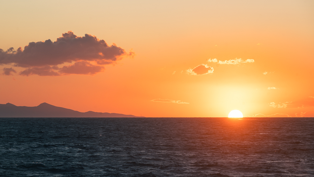 Dennoch liessen wir es uns nicht nehmen, die Weingläser auszupacken und auf eine tolle gemeinsame Reise anzustoßen, bis schliesslich die Sonne nördlich von Sifnos hinter dem Horizont des Mittelmeers verschwand.
