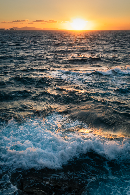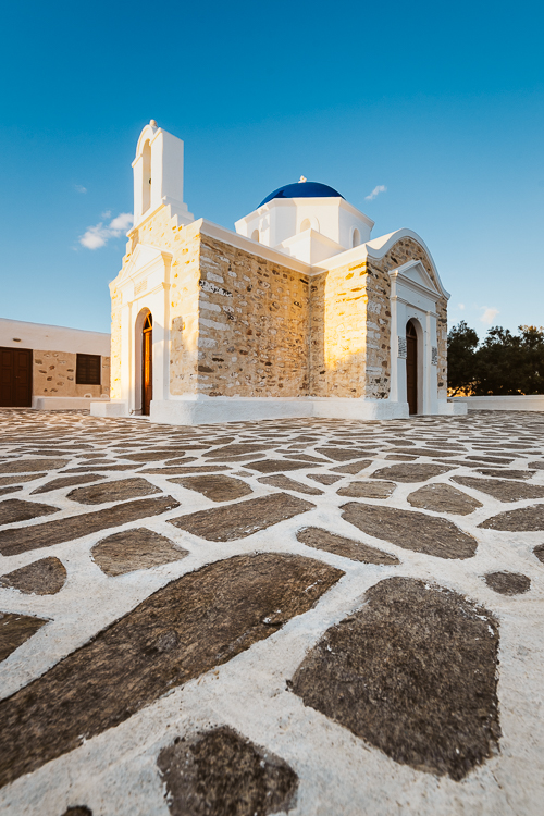 Später unternahmen wir noch einen kurzen Spaziergang zur Agios Fokas Kapelle und dem Leuchtturm am westlichen Ende der Bucht von Parikia. Das ist ein hervorragender Ort für den Sonnenuntergang. Der Wind hatte inzwischen deutlich aufgefrischt, so dass uns die Gischt der an der Felsenküste aufschlagenden Wellen ins Gesicht geblasen wurde.