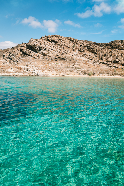 Als zweiter Ankerplatz lud die Bucht vor dem Tourkou Ammos Strand zum Sprung ins kristallklare, türkisfarbene Wasser ein. Wer Lust hatte, ging baden, während andere entspannt auf dem Deck die Sonne genossen. Im Hintergrund erhoben sich die Felsformationen der Paros Park Halbinsel, welche wir in den kommenden Tagen noch genauer erkunden sollten.