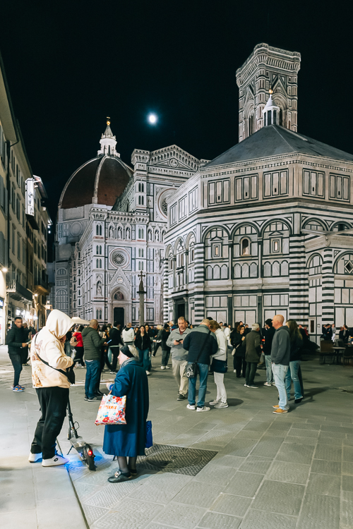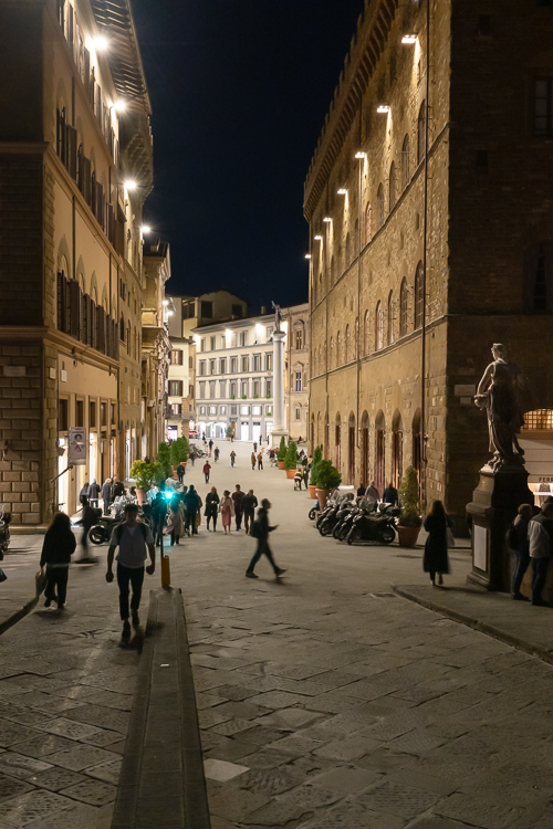 Das herbstliche Florenz lockt mit für Stadtbesichtigungen angenehmen Temperaturen und weniger Touristen als zur Hochsaison, auch wenn „weniger“ immer noch eine recht belebte Altstadt und große Gruppen vor und in den Sehenswürdigkeiten bedeuteten. Der Anlass für meine Reise in die Toskana war zwar das Fotoprojekt mit dem Dom Santa Maria del Fiore, doch darüber hinaus gab es noch so viel mehr in der Stadt zu sehen.
